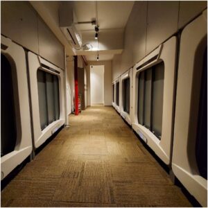 டிவி, இன்டர்நெட், சிறிய பிரிட்ஜ், மின் வெளிச்சம், ஏசி என அனைத்து வசதிகளும் இருக்கும். இந்த கேப்சூல் அறைகளுக்கு வெளியே பொதுவான கழிப்பறை வசதிகளும் இருக்கும்.