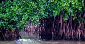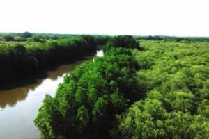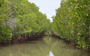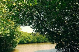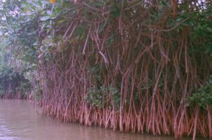 பச்சையாய் பெரிய இலைகளுடன், ட்யூப் கட்டி தொங்க விட்ட மாதிரி காய்களுடன் காட்சியளிக்கும் இந்த மரங்களை, மரம் சார்ந்த காடுகளை ‘மாங்குரோவ் பாரஸ்ட்’ என்கிறார்கள்.