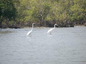 இந்த மாதிரி சதுப்பு நிலங்கள்தான் இந்த மாங்குரோவ் காடுகளுக்கு ரொம்ப ஊட்டத்தை அளிப்பதாகச் சொல்கிறார்கள். சுந்தரவனக் காடுகள் என்று புவியியலில் படித்ததையும் ஞாபகப்படுத்துகிறார்கள். உண்மையிலேயே சுந்தரவனம்தான்.