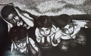 பத்திரிகையாளர் மணா தொகுத்து பரிதி பதிப்பகம் வெளியிட்டுள்ள ‘முள்ளிவாய்க்கால் – ஓவிய நிழல்கள்’ என்ற நூலில் இருந்து சில ஓவியப் பதிவுகள்:
