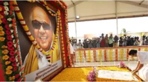 கருணாநிதியின் நினைவிடத்தில் ஒவ்வொரு நாளும் ஒவ்வொரு மாடலில் பூக்கள் அலங்காரம் செய்யப்பட்டிருக்கும்.