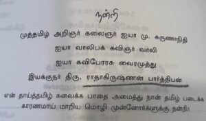 ”நான் ஒரு I T person, உங்களுக்கு dedicate பண்ணி இந்த book எழுதியிருக்கேன், எதிர்பாராம நீங்களே எதிர்ல…” நம்ப முடியாமல் நீட்டிய புத்தகத்தை வாங்கி (வாக்கிங் பாதையில் எப்படி ஒரு dedication திடீரென முளைக்க முடியும்?) பார்த்தேன்.