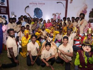 விழா தொடங்குவதற்கு முன்பாக கரகாட்டம், மானாட்டம், மயிலாட்டம், பொய்க்கால் குதிரை, புலி ஆட்டம், காவடி ஆட்டம், காளியாட்டம், கருப்புசாமி ஆட்டம், பறை ஆட்டம் என பல்வேறு நாட்டுப்புறக்கலைஞர்களின் ஆட்டம் பாட்டத்தோடு விழாவிற்கு வந்தவர்களை வரவேற்றது மிகச் சிறப்பான அனுபவமாக அமைந்தது.