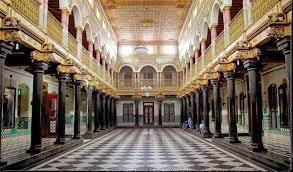 உள்ளே போகப் போக விரிந்து கொண்டிருக்கும் அரண்மனை. உள்ளே இருக்கிற சாப்பாடு அறையின் நீளம் ஒரு ஆச்சர்யம். கறுப்பும் வெள்ளையுமாகக் கட்டம் போட்ட வெளிநாட்டு பளிங்குக் கற்கள் பதித்த திண்ணைகள்.