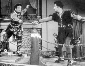 28. அது முதல் எம்.ஜி.ஆர்-நம்பியார் நடிக்கும் ராஜா-ராணி கதைகளில் வாள் சண்டை கட்டாய அம்சமாக இடம்பெறத் தொடங்கியது.