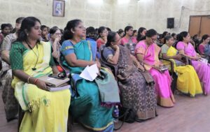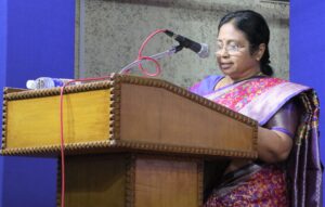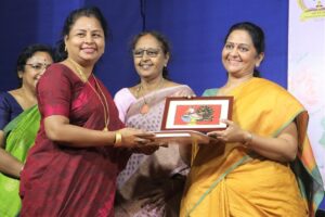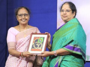 விழாவில் பேசிய தாளாளர் லதா ராஜேந்திரன், மூத்த நடிகை விஜயகுமாரி அம்மாவை சிறப்பித்து விரிவாகப் பேசினார்.