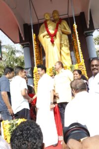 முன்னதாக வைக்கம் போராட்ட நினைவிடத்திற்கு எதிரே உள்ள பொன்மனச் செம்மல் எம்.ஜி.ஆர் மற்றும் அன்னை ஜானகி அம்மையாரின் இல்லத்திற்கு இரு மாநில முதலமைச்சர்களும் வருகை தந்தனர்.