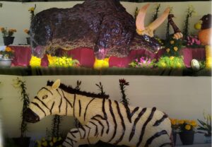 அதோடு காட்டெருமை, வரிக் குதிரை, டோரா புஜ்ஜி பொம்மை போன்ற உருவங்கள் காய்கறிகளால் காட்சிப்படுத்தப்பட்டுள்ளது.