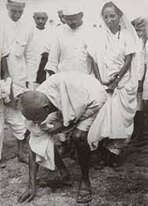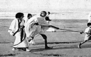 அங்கு கடல் அலை ஒதுக்கியிருந்த உப்பை அள்ளி, கையை உயர்த்தினார். அது, இந்தியாவில் பிரிட்டிஷ் சாம்ராஜ்ஜியத்தின் அஸ்தமனத்துக்கு அழுத்தமாக அடிகோலிய செயலாகவே வரலாற்றாசிரியர்களால் பார்க்கப்படுகிறது.