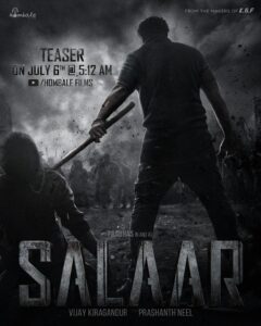 கேஜிஎஃப் 2 மற்றும் காந்தாரா போன்ற பிளாக்பஸ்டர்களுடன் 2022 – ம் ஆண்டை வெற்றிகரமாகக் கொண்டாடிய பிறகு, Hombale Films நிறுவனத்தின் அடுத்த பிரமாண்ட படைப்பாக, பிரபாஸ் நடிப்பில், பிரஷாந்த் நீல் இயக்கத்தில், “சலார்” பாக்ஸ் ஆபிஸில் புதிய சாதனைகளைப் படைக்கப் போகிறது.