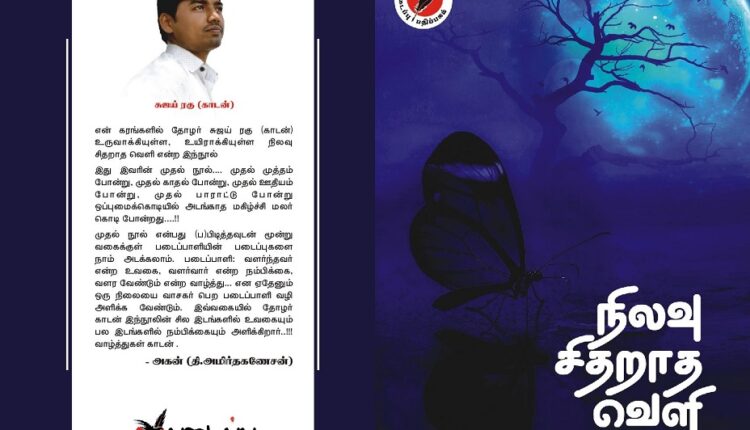‘’நிலவு சிதறாத வெளி’’ புத்தகத்தின் தலைப்பே ஈர்க்கும் வகையில் அமைத்துவிட்ட படைப்பாளி காடன் (எ) சுஜை ரகு. திருப்பூரை வாழ்விடமாகக் கொண்ட ஒளிப்படக்காரரான இவருக்கு இது முதல் தொகுப்பு.
