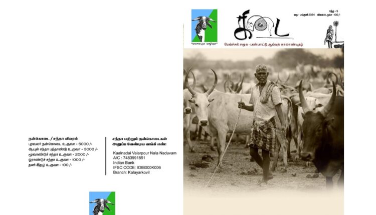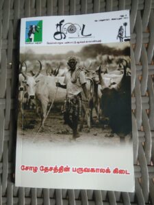 ‘சோழ தேசத்தின் பருவகாலக் கிடை’ என்பது அந்த நூலின் துணைத்தலைப்பு. அந்தப் புத்தகம், மேய்ச்சல் சமூக பண்பாட்டு ஆய்வுக் காலாண்டிதழ். கால்நடை வளர்ப்போர் நல நடுவத்தின் வெளியீடு அது.