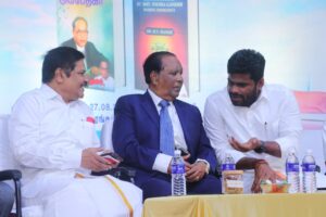 முதுபெரும் மருத்துவரும், அரசியல் வித்தகரும், முன்னாள் சுகாதாரத்துறை அமைச்சருமான டாக்டர் ஹெச்.வி.ஹண்டே அவர்கள் எழுதிய இரண்டு நூல்களின் வெளியீட்டு விழா, நேற்று (27.08.2024) காலை 10 மணிக்குச் சென்னை அடையாறில் உள்ள டாக்டர் எம்.ஜி.ஆர். ஜானகி மகளிர் கலை மற்றும் அறிவியல் கல்லூரி வளாகத்தில் உள்ள எம்.ஜி.ஆர் அரங்கில் நடைபெற்றது.