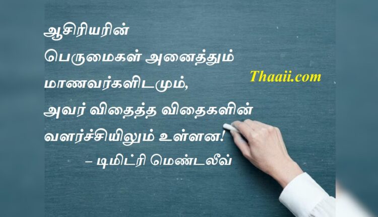 விதையின் மதிப்பு விருட்சத்தின் பயனில்…! கதம்பம் Last updated Sep 5, 2024 Share தாய் சிலேட்: ஆசிரியரின் பெருமைகள் அனைத்தும் மாணவர்களிடமும், அவர் விதைத்த விதைகளின் வளர்ச்சியிலும் உள்ளன! – டிமிட்ரி மெண்டலீவ் Share FacebookTwitterGoogle+ReddItWhatsAppPinterestEmail