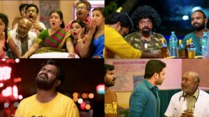 முன்பாதியில் அடர்த்தியான தலைமுடி, நீளமான கிருதா உடன் அடியாள் வேடங்களில் நடிப்பவராக வரும் பகவதி பெருமாள் கிச்சுகிச்சு மூட்டுகிறார்.