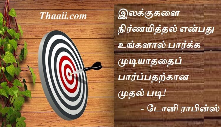 இலக்கை நிர்ணயித்தலே வெற்றியின் முதல்படி! கதம்பம் Last updated Dec 27, 2024 Share தாய் சிலேட்: இலக்குகளை நிர்ணயித்தல் என்பது உங்களால் பார்க்க முடியாததைப் பார்ப்பதற்கான முதல் படி! – டோனி ராபின்ஸ் Share FacebookTwitterGoogle+ReddItWhatsAppPinterestEmail