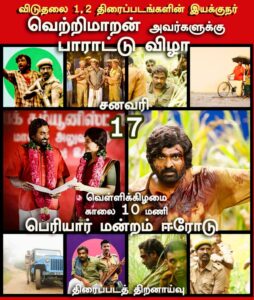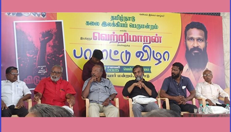 இந்த நோக்கத்தோடு தமிழ்நாடு கலை இலக்கியப் பெருமன்றம் கடந்த 17 ம் தேதி ஈரோடு பெரியார் மன்றத்தில் இயக்குநர் திரு.வெறறிமாறனுக்கு பாராட்டுவிழா நடத்தினர்.