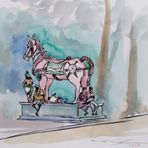கோபி என்ற மாணவருடன் கலை, கற்றல், பயன், தேடல் போன்ற உரையாடல்களுடன், அந்த பகுதியில் ஒரு குதிரை பொம்மை, பாகன் மற்றும் அதனருகில் அமர்ந்திருந்த சில மனிதர்களையும் வரைந்து காண்பித்து அதன் விளக்கங்கள் குறித்து மாணவர்களுடன் உரையாடியது தென்னம்பாக்கம் வந்த பயனை அடைந்தேன்.