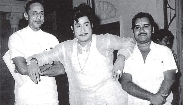 இந்த பட்டிக்காடா பட்டணமா? படப்பிடிப்பில் நடிகர் திலகத்துடன் இயக்குநர் மாதவன் மற்றும் கதாசிரியர் பாலமுருகன் இருக்கும் காட்சி.