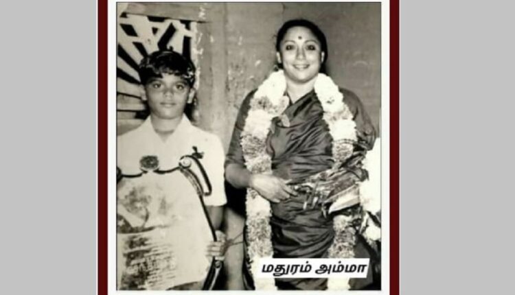 கலைவாணர் என்.எஸ்.கிருஷ்ணனின் துணைவியார் டி.ஏ.மதுரத்திற்கு, விழுப்புரம் தமிழ்ச் சங்கம் சார்பில் 1956-ம் ஆண்டு ‘செந்தமிழ் விறலி’ பட்டம் வழங்கப்பட்டது. அப்போது எடுக்கப்பட்ட புகைப்படத்தில் மதுரத்துடன் அவரது மகன் என்.எஸ்.கே.சண்முகம்