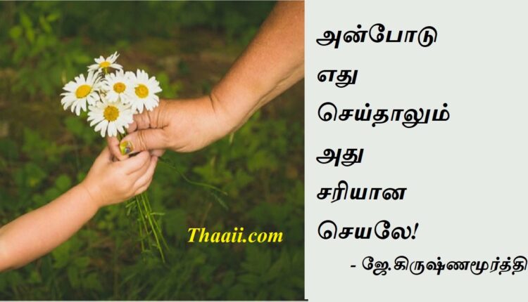எல்லாவற்றையும் சரி செய்து விடுகிறது அன்பு! கதம்பம் Last updated Feb 17, 2025 Share தாய் சிலேட்: அன்போடு எது செய்தாலும் அது சரியான செயலே! – ஜே.கிருஷ்ணமூர்த்தி Share FacebookTwitterGoogle+ReddItWhatsAppPinterestEmail