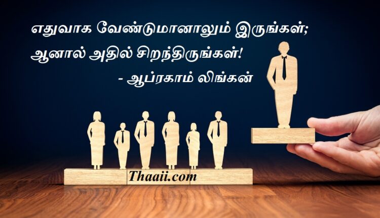 தனித்துவமே தலைமைக்கான அடையாளம்! கதம்பம் Last updated Feb 26, 2025 Share தாய் சிலேட்: எதுவாக வேண்டுமானாலும் இருங்கள்; ஆனால் அதில் சிறந்திருங்கள்! – ஆப்ரகாம் லிங்கன் Share FacebookTwitterGoogle+ReddItWhatsAppPinterestEmail