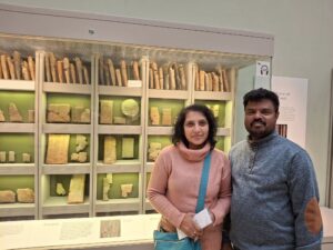 ஹரப்பா நாகரிகம் செழித்த பகுதியில் வாழ்ந்த மக்கள் மெசபோடீமியா பகுதி மக்களோடு நடத்திய வணிகம் தொடர்பான கூனிபார்ம் வகை எழுத்துப் பொறிப்பு கொண்ட களிமண் பலகை, பலவகை சீல்கள், ஒற்றைக் கொம்பு விலங்கு, எருது, கீறல்கள் கொண்ட எழுத்து வடிவங்கள் ஆகியவற்றையும் மண்பாண்ட ஓடுகளையும் அணிகலன்களின் உடைந்த பகுதிகளையும் மீண்டும் நேரில் பார்த்து மகிழ்ந்தோம்.