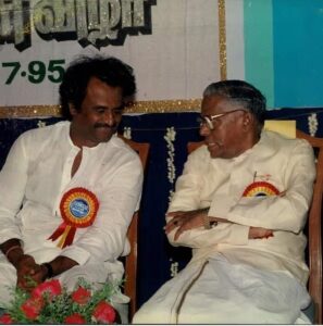 அன்னைக்கு (பாட்ஷா 100 நாள் விழா), நான்தான் கடைசியா பேசுனேன். கடைசியா பேசும்போது எப்படி மைக் புடிச்சு அவர் பேச முடியும்.