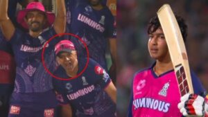காலில் ஏற்பட்ட காயத்தால் சக்கர நாற்காலியில் நகர்ந்துகொண்டிருக்கும் ராகுல் திராவிட்டே எழுந்து நின்று கைதட்டி பாராட்டும் அளவுக்கு மிகப்பெரிய சாதனையை செய்திருக்கிறார் வைபவ் சூர்யவன்ஷி.