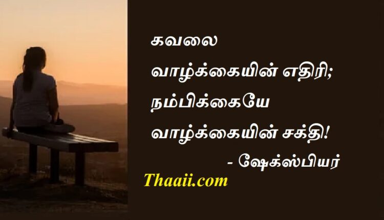 நம்பிக்கையே வாழ்க்கையின் சக்தி! கதம்பம் Last updated Apr 30, 2025 Share தாய் சிலேட்: கவலை வாழ்க்கையின் எதிரி; நம்பிக்கையே வாழ்க்கையின் சக்தி! – ஷேக்ஸ்பியர் Share FacebookTwitterGoogle+ReddItWhatsAppPinterestEmail