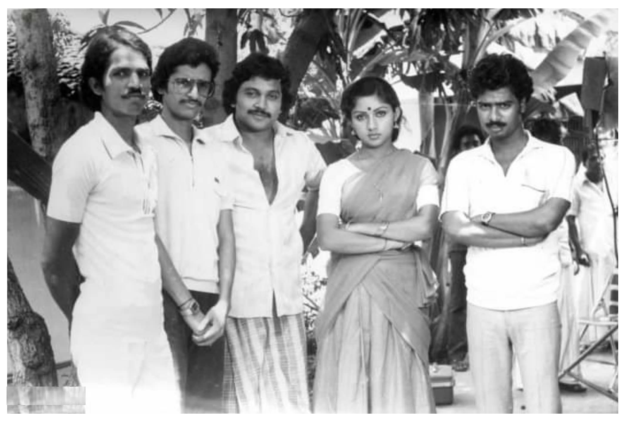 குறிப்பு: கன்னிராசி படப்பிடிப்பின்போது இயக்குநர் பாண்டியராஜ், நாயகன் பிரபு, நாயகி ரேவதி உடன் படக்குழுவினர் எடுத்துக்கொண்ட புகைப்படம்.