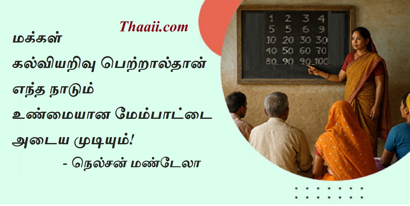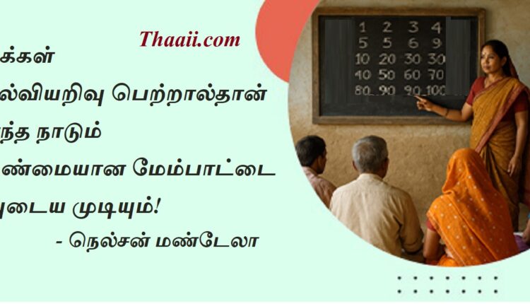 கல்வியறிவே சமூக முன்னேற்றத்தின் அடையாளம்! கதம்பம் Last updated Jul 18, 2025 Share தாய் சிலேட்: குடிமக்கள் கல்வியறிவு பெற்றால்தான் எந்த நாடும் உண்மையான மேம்பாடு அடைய முடியும்! – நெல்சன் மண்டேலா Share FacebookTwitterGoogle+ReddItWhatsAppPinterestEmail