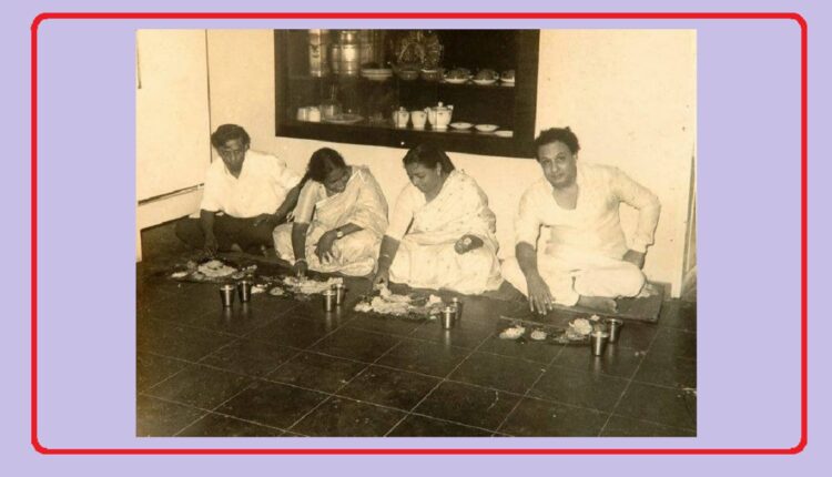 நடிகர் நாகேஷ் மற்றும் அவரது மனைவியுடன் தரையில் சம்மணமிட்டு எம்ஜிஆரும், ஜானகி அம்மையாரும் இணைந்து சாப்பிட்டபோது எடுத்த அரிய புகைப்படம்.