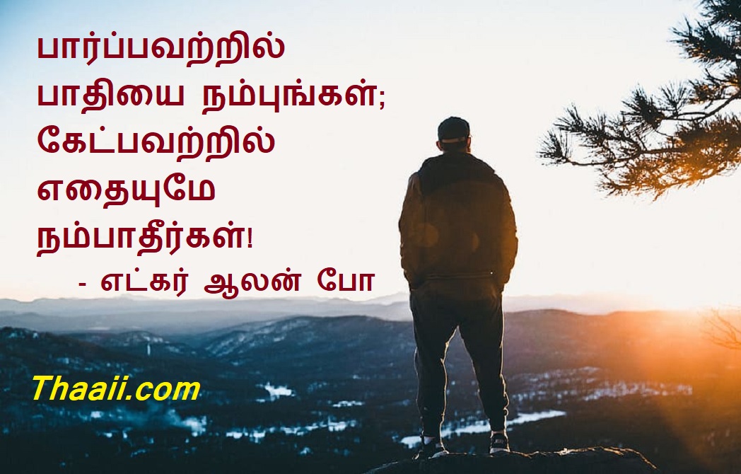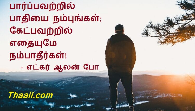 தீர விசாரிப்பதே மெய்! கதம்பம் Last updated Aug 16, 2025 Share தாய் சிலேட்: பார்ப்பவற்றில் பாதியை நம்புங்கள்; கேட்பவற்றில் எதையுமே நம்பாதீர்கள்! – எட்கர் ஆலன் போ Share FacebookTwitterGoogle+ReddItWhatsAppPinterestEmail