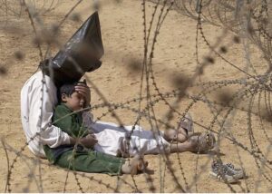 15) இந்த ஈராக்கியக் கைதி தனது 4 வயது மகனை ஆறுதல்படுத்த முயன்றபோது, அந்த சிறுவன் தனது தந்தையின் கைவிலங்கை கண்டு பயந்தான்.