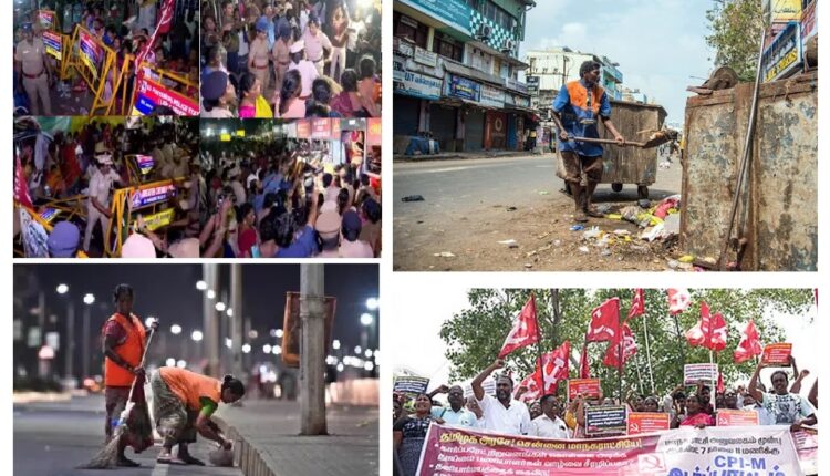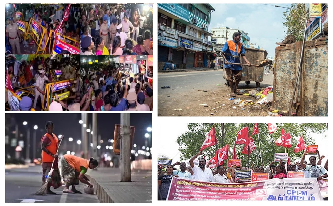 அண்மையில், சென்னை மாநகராட்சிக்கு அருகில் பதிமூன்று நாட்களாகத் தொடர்ந்து போராடிய தூய்மைப் பணியாளர்களை நீதிமன்றம் அப்புறப்படுத்தச் சொல்லி உத்தரவிட்டது.