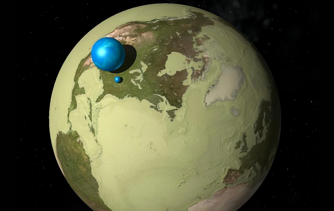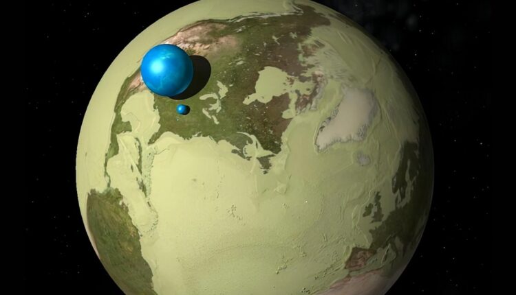 12 ஆயிரத்து 700 கிலோ மீட்டர் குறுக்களவுள்ள நமது பூவுலக உருண்டையில் அந்த நீர்ப்பந்து வெறும் 1,400 கிலோ மீட்டர் குறுக்களவுள்ள ஒரு குட்டி கண்ணாடிப் பந்து மாதிரிதான் இருக்கும்.