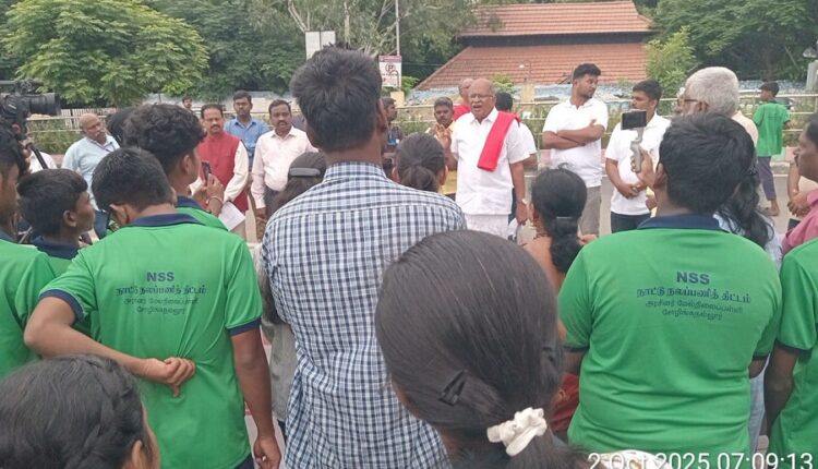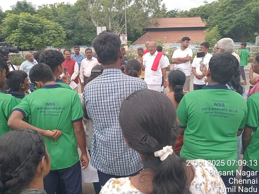 காந்தியடிகள் பிறந்தநாளையொட்டி, நேற்று (02.10.2025) காலை 6.30 மணியளவில் மது, போதை மறுப்பு மக்கள் இயக்கத்தினர், பல்துறைகளைச் சேர்ந்த சமூக ஆர்வலர்கள், மாணவ மாணவியர் சென்னை எலியட் கடற்கரையில் திரண்டனர்.