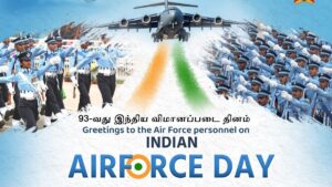 இந்திய விமானப்படை உருவாக்கப்பட்ட அக்டோபர் 8-ம் தேதியே இந்திய விமானப்படை தினமாகக் கொண்டாடப்படுகிறது. அவ்வகையில், 93-வது இந்திய விமானப்படை தினம் இன்று கொண்டாடப்பட்டு வருகிறது.