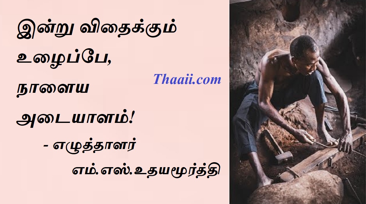 இன்றைய உழைப்பு நாளைய அடையாளம்! கதம்பம் Last updated Jan 21, 2026 Share தாய் சிலேட்: இன்று விதைக்கும் உழைப்பே, நாளைய அடையாளம்! – எழுத்தாளர் எம்.எஸ்.உதயமூர்த்தி Share FacebookTwitterGoogle+ReddItWhatsAppPinterestEmail