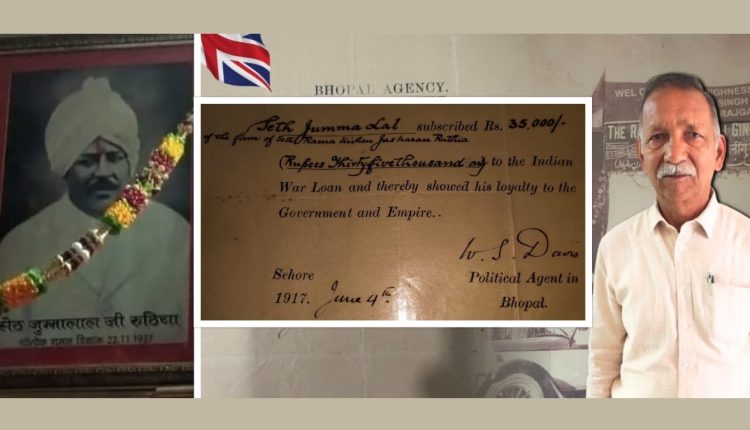 “சேத் ஜும்மா லால் இந்திய போர்க்காலக் கடனுக்காக 35,000 ரூபாயை வழங்கியதன் மூலம் அரசாங்கத்திற்கும் சாம்ராஜ்யத்திற்கும் தனது விசுவாசத்தைக் காட்டியுள்ளார்” என்று அந்த ஆவணத்தில் குறிப்பிடப்பட்டுள்ளது.