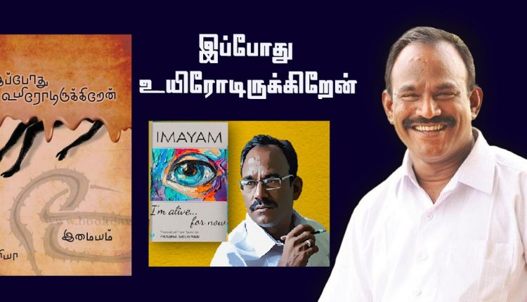 எழுத்தாளர் இமையம் எழுதிய ‘இப்போதும் உயிருடன் இருக்கிறேன்’ என்ற நாவல் ‘I am alive for now’ என்ற தலைப்பில் ஆங்கிலத்தில் பிரபா ஸ்ரீதேவன் மொழிபெயர்ப்பில் வெளியாகியிருக்கிறது.