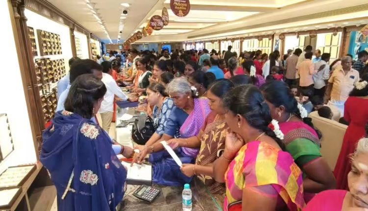 அட்சய திருதியை முன்னிட்டு நகைக்கடைகளில் குவிந்த மக்கள்.