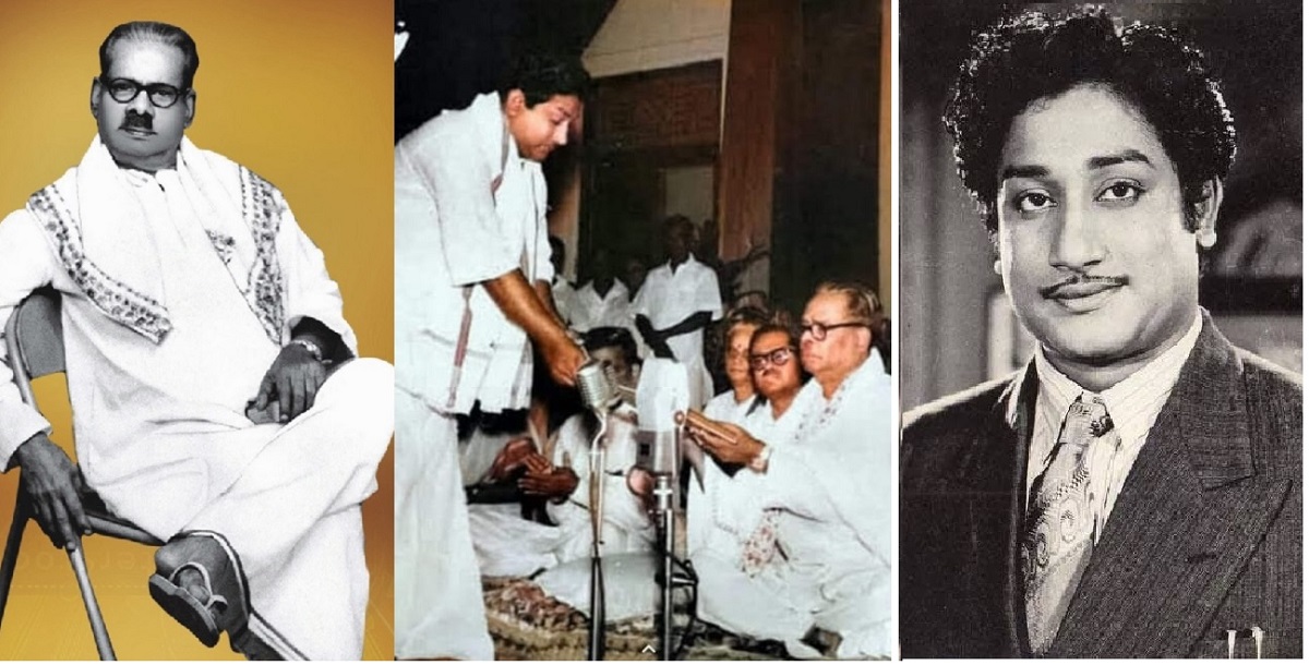 தமிழக அரசின் தமிழ் வளர்ச்சித் துறைத் தலைவராக பாவேந்தர் பாரதிதாசன் அவர்கள் இருந்தபோது தமிழ் வளர்ச்சிக்காக அவரிடம் நிதி வழங்கும் நடிகர் திலகம் சிவாஜி கணேசன்.